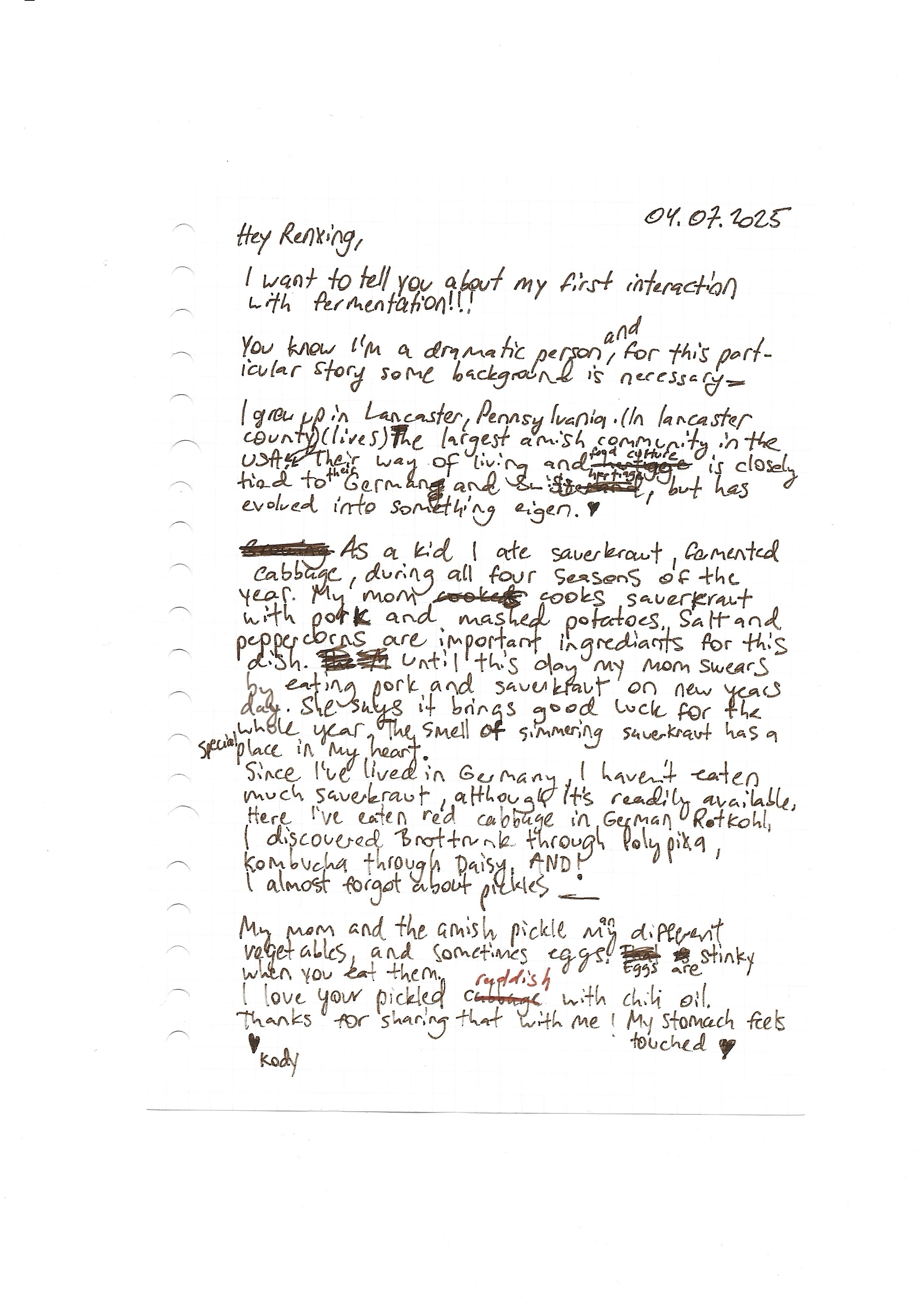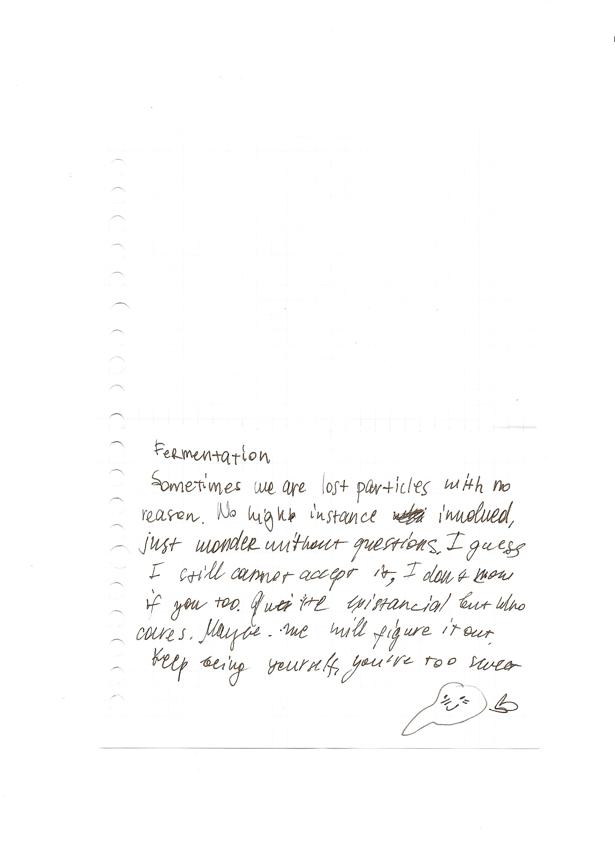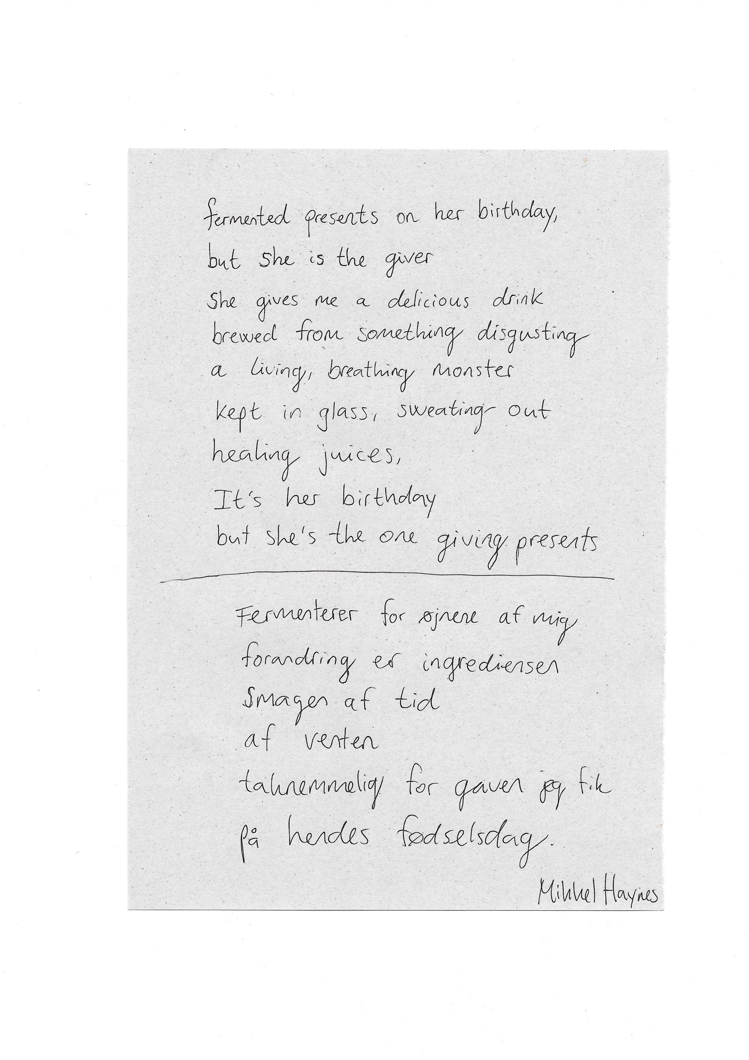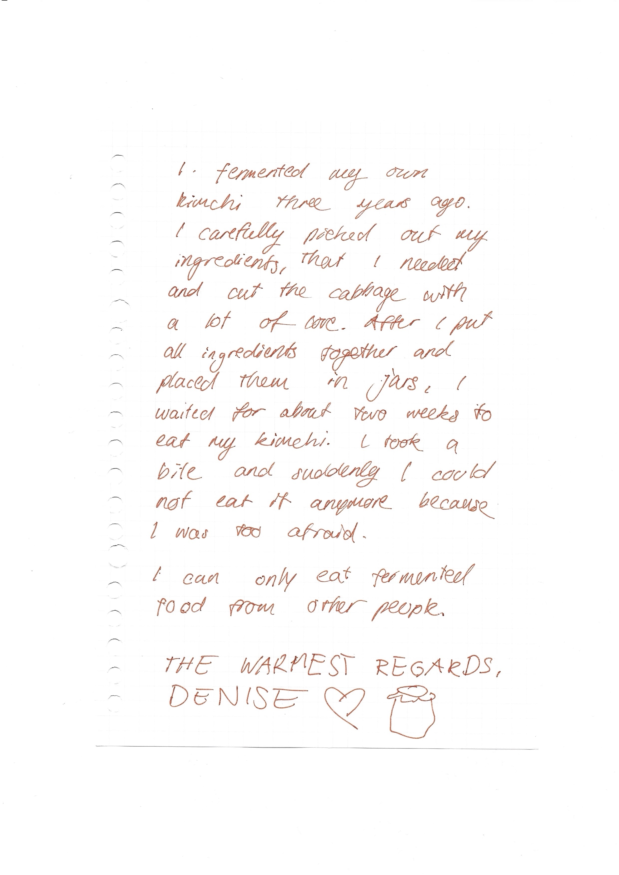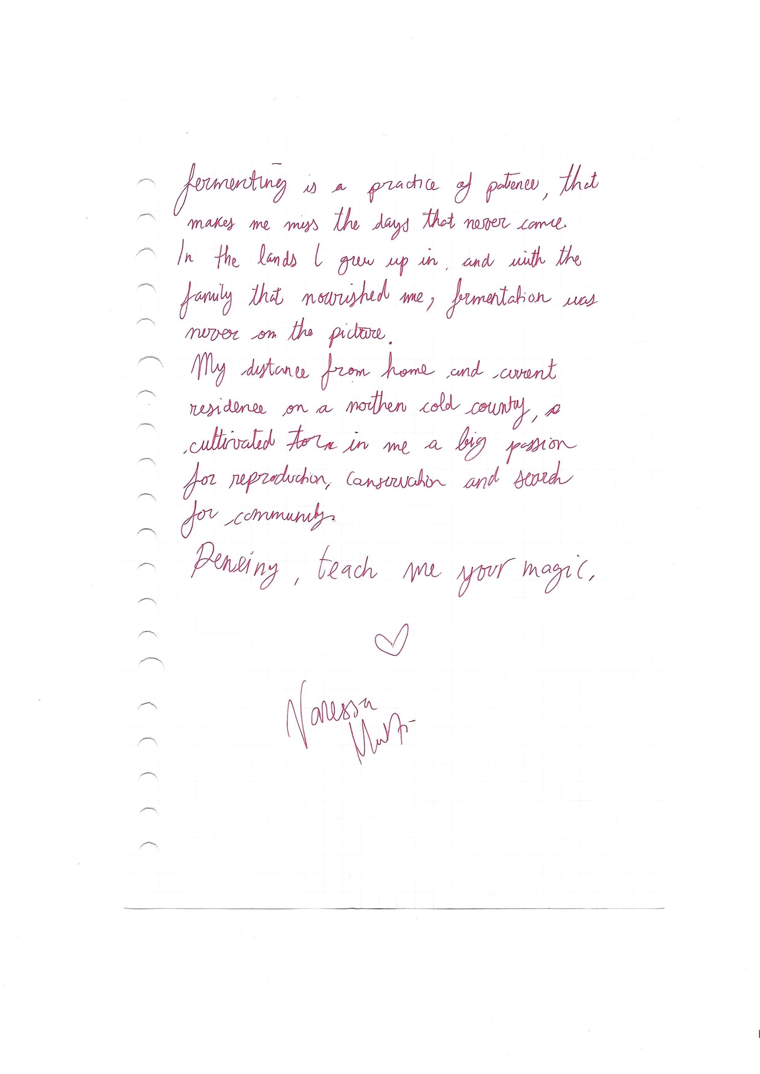 In the process of fermentation, our expectations, imaginations and narratives are connected through invisible microorganisms. Through exchanging and gifting, we intertwine in the minuatiae and then create non-verbal and non-material possibilities.